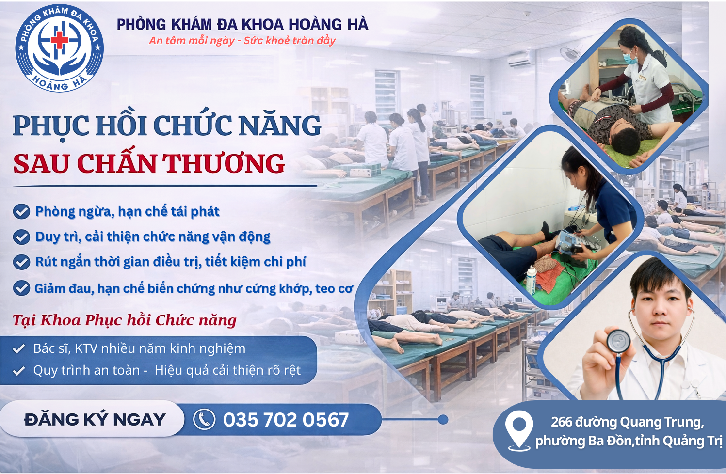 Tại Khoa Phục hồi chức năng – Phòng khám Đa khoa Hoàng Hà đã tiếp nhận rất nhiều người bệnh sau chấn thương đến điều trị phục hồi chức năng muộn và gặp phải nhiều vấn đề sức khỏe trong đó phổ biến nhất là tình trạng teo cơ, cứng khớp, hạn chế vận động, sinh hoạt.